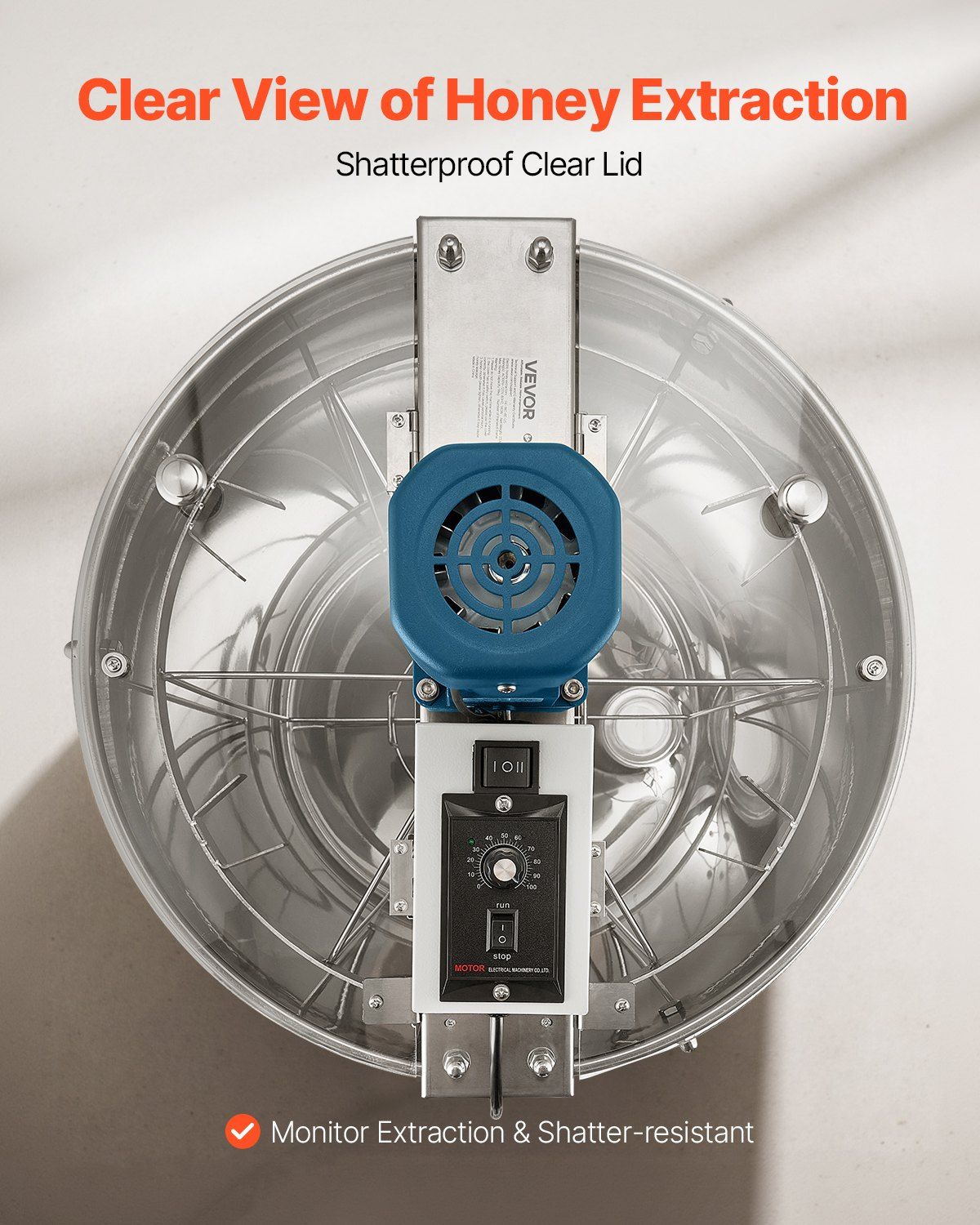 Stepless Speed Adjustment: Our electric honeycomb extractor with 0-100 RPM adjustable speed allows for customization based on honey viscosity, preserving hive integrity and maximizing honey extraction. Ensures optimal extraction results every time.