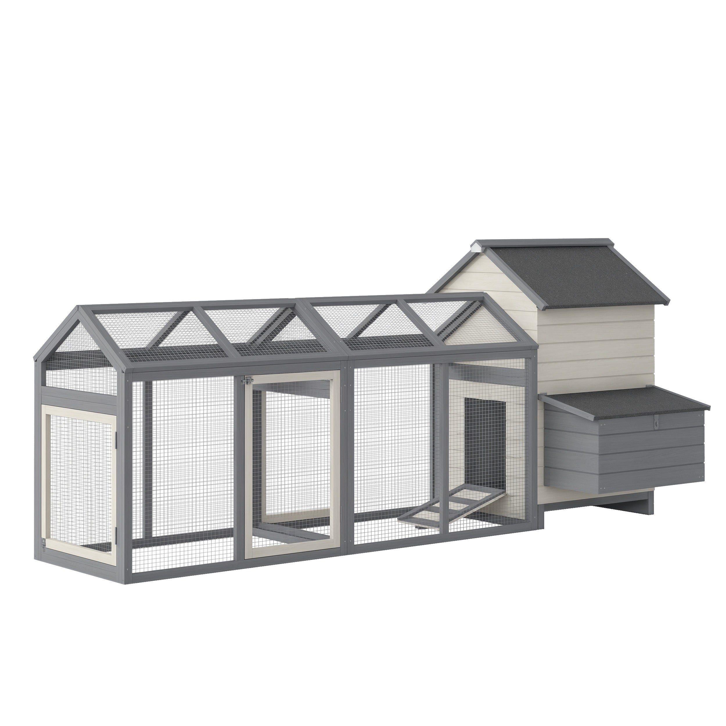 PawHut Wooden Chicken Coop with Run, 2 Nesting Boxes, 2 Roosting Bars, Ramp & Tray, 6-8 Chickens, Gray
