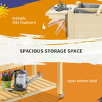 Outsunny 48" x 21" x 34" Wooden Elevated Planter Bed with 8 Pocket Grow Grid, Lockable Wheels, Foldable Side Clapboard, Filter Fabric, and Drainage Holes, Natural