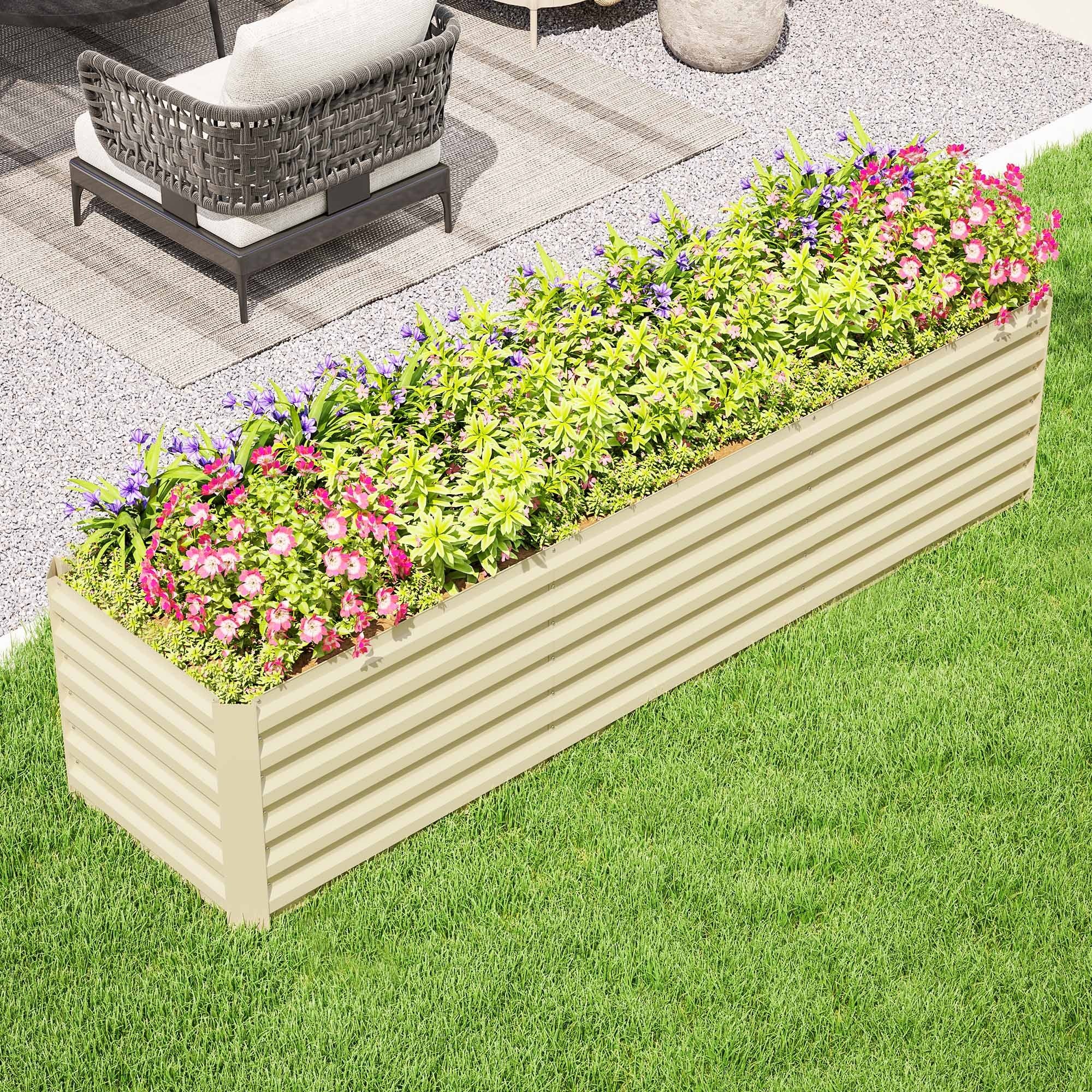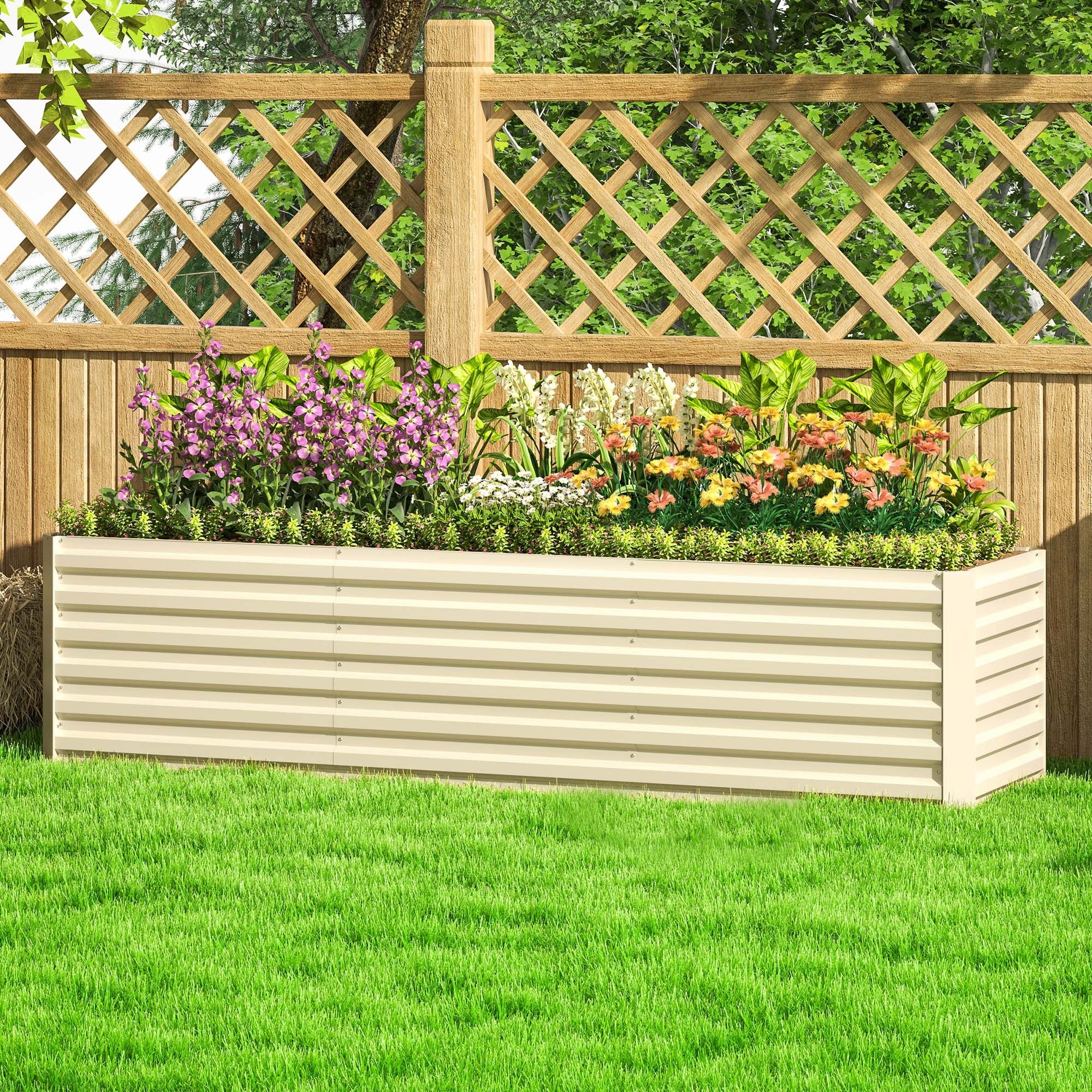 Outsunny 8' x 2' x 2' Galvanized Metal Raised Garden Bed, Cream