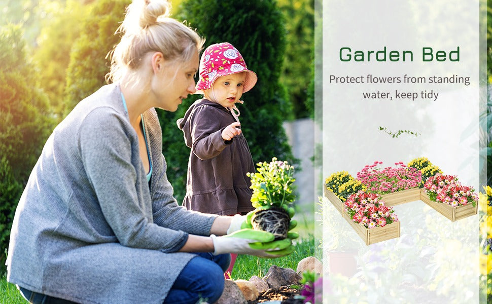 This Outsunny Raised Garden Bed Set of 5 gives you generous space to grow vegetables, herbs, flowers, and more right in your backyard. Made from sturdy wood, each large planter box helps keep soil contained while improving drainage and root health. Put your creative mind to work as the modular design lets you arrange the beds together or separately to fit your outdoor layout. Its raised structure reduces bending and helps protect plants from weeds and pests. Perfect for gardeners who want flexibility, durability, and a clean, organized growing area outdoors.
