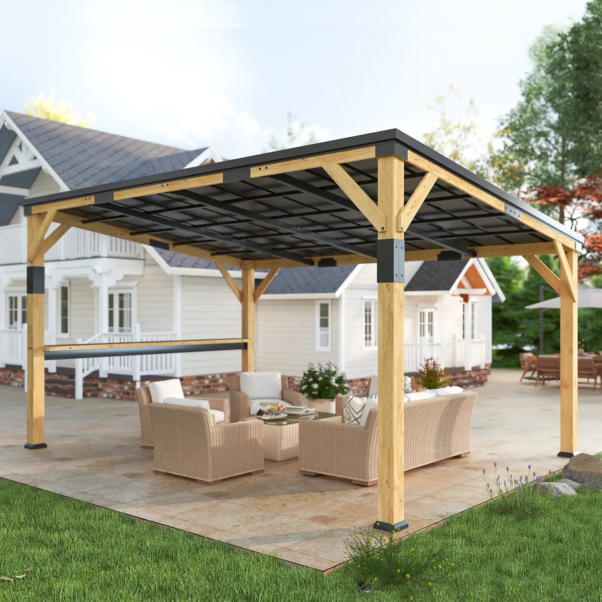 Powder coated galvanized steel hardtop pent roof offers water resistance and UV protection
