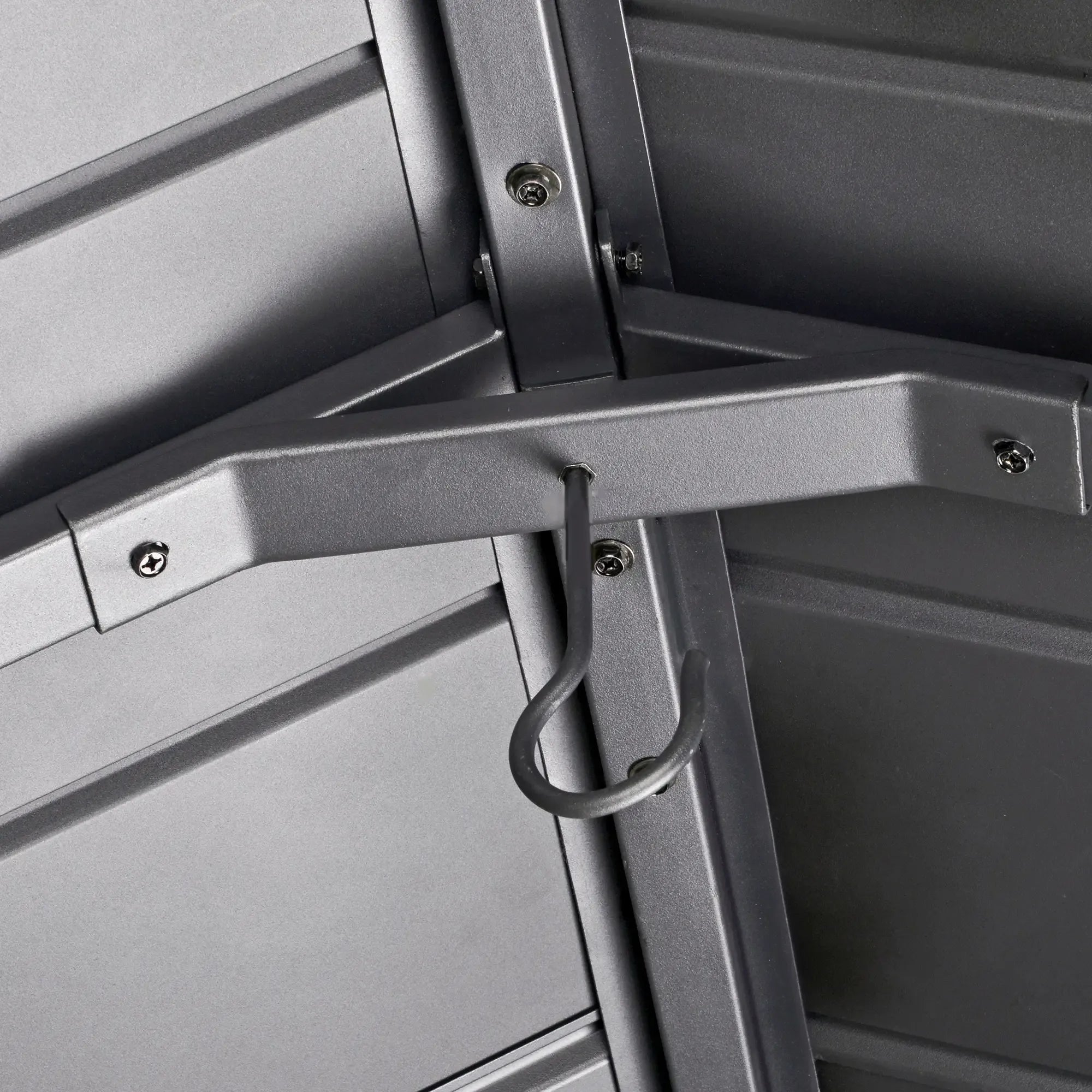 The slanted steel roof that protects from rain and sun