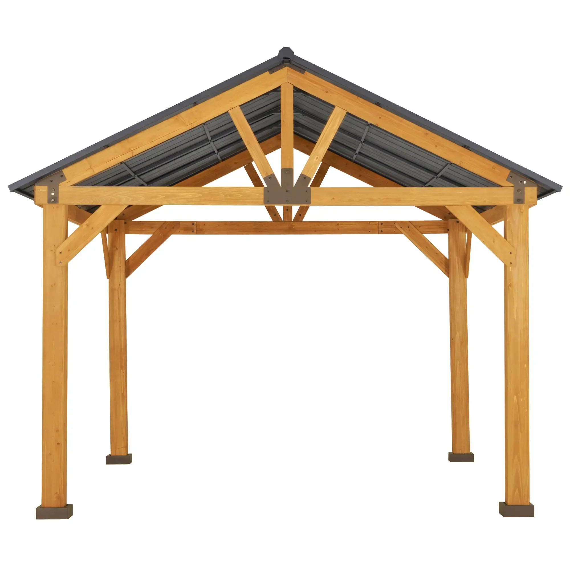 Outsunny 11' x 13' Hardtop Gazebo with Galvanized Steel Roof, Wooden Frame, Ceiling Hook, Natural Wood Finish