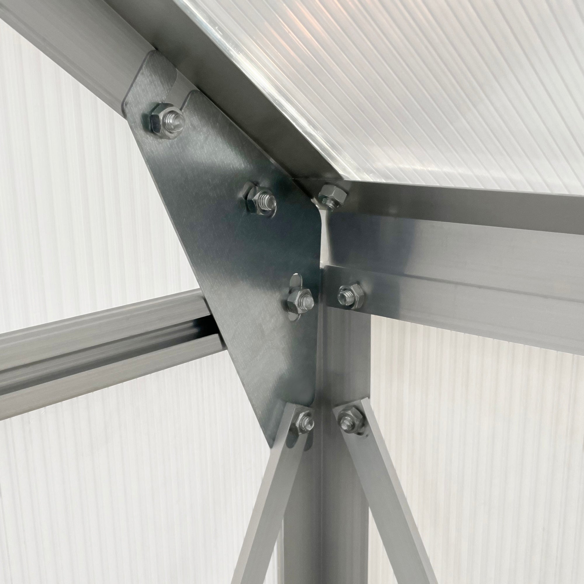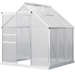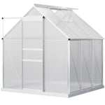 Outsunny 6' x 6' Polycarbonate Greenhouse with Aluminum Frame, Adjustable Roof Vent, Rain Gutters, and Sliding Door, Silver