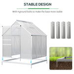 Ambitions for a longer growing season or a more bountiful harvest? Go with the greenhouse. Outsunny offers a heavy-duty polycarbonate greenhouse with a strong aluminum frame. Polycarbonate lets light in, insulates the interior, and stops plant scorching by blocking UV. The greenhouse has a sliding door for quick access and a roof window with 5 levels of adjustment for airflow control, and a sloped roof with rain gutters. The greenhouse sits on a galvanized base for stable support, and four foundation stakes are included. Extend your growing season with Outsunny.