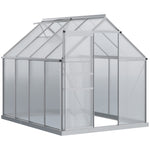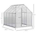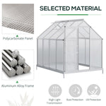 Outsunny 8' x 6' Polycarbonate Greenhouse with Aluminum Frame, Adjustable Roof Vent, Rain Gutters, and Sliding Door, Silver
