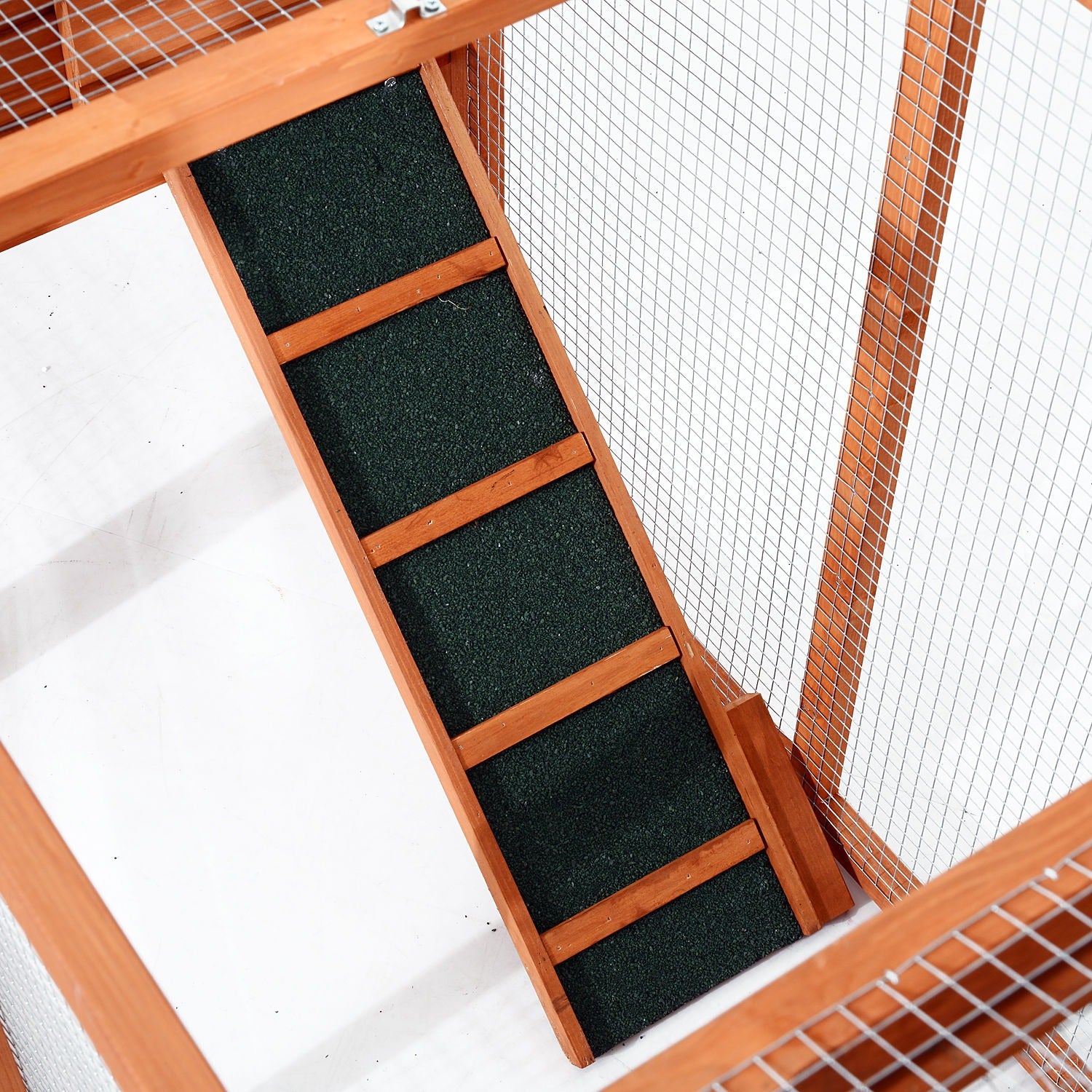 This PawHut 124" Dual Backyard Chicken Coop is designed to comfortably house multiple chickens with its spacious dual-coop layout and outdoor runs. Built from sturdy, weather-resistant wood, it features raised sleeping areas, smooth access ramps, and secure nesting boxes for easy egg collection. The thoughtful design allows chickens to move freely between coops and runs while staying protected and comfortable. Ideal for backyard poultry keepers, this coop combines functionality, durability, and a clean farmhouse look. A great solution for those who want a well-organized and efficient home for their flock.