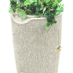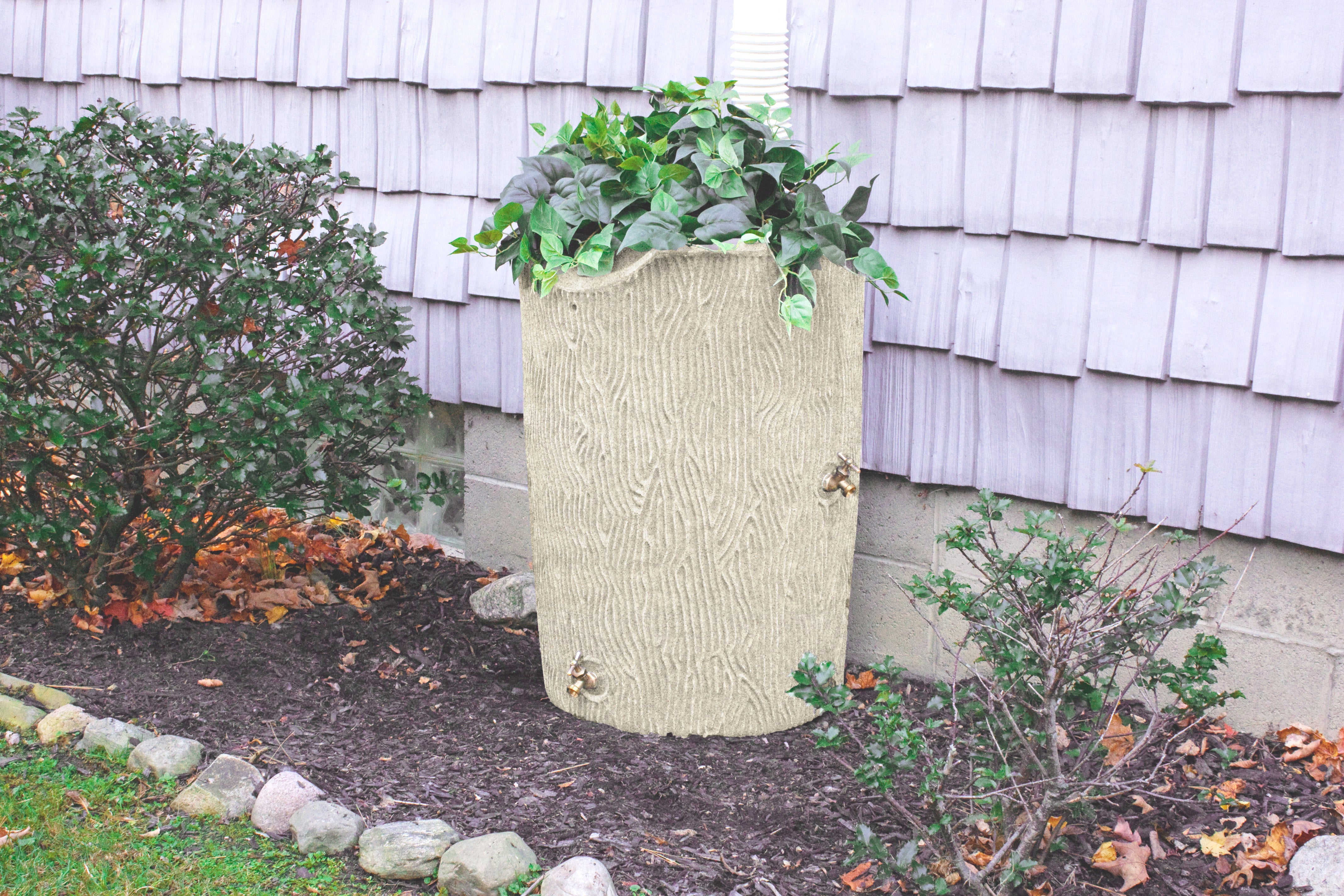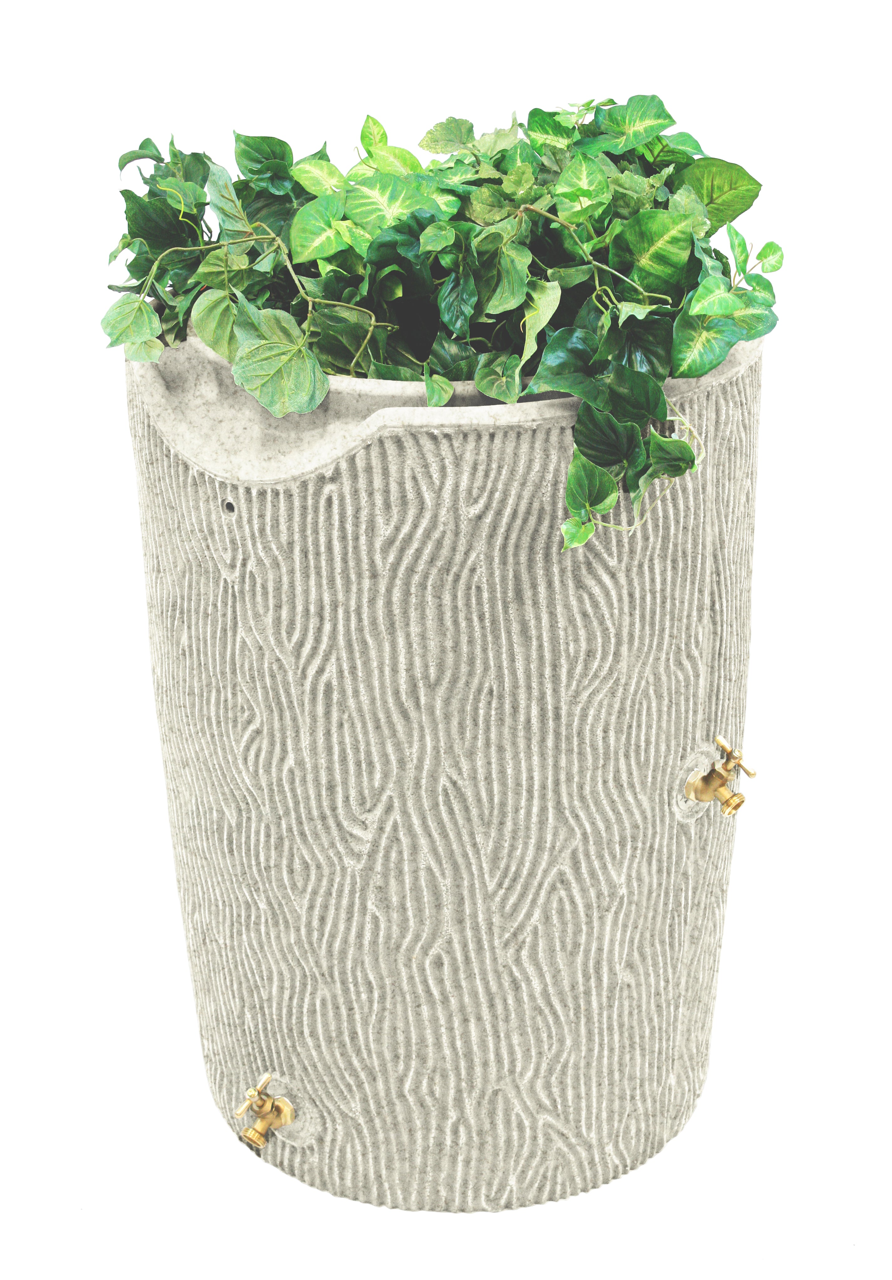 The Impressions Bark 50 Gallon Rain Saver is perfect for virtually any home. Its appearance emulates the rough texture of a large tree trunk, and with a deep welled top, you can plant an array of flowers or even a small herb or vegetable garden. The top also includes the Good Ideas original, integrated channel that automatically diverts overflow to the front of the barrel and keeps your foundation from flooding. The large opening can be used for 2x3 or 3x4 downspouts and is covered with a soft, fine mesh, plastic screen that keeps out heavy debris. Also included with the barrel are two sturdy metal spigots to install in the offset spigot locations.