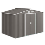 Outsunny 9' x 6' Metal Storage Shed with 2 Sliding Doors, 4 Air Vents, Gray