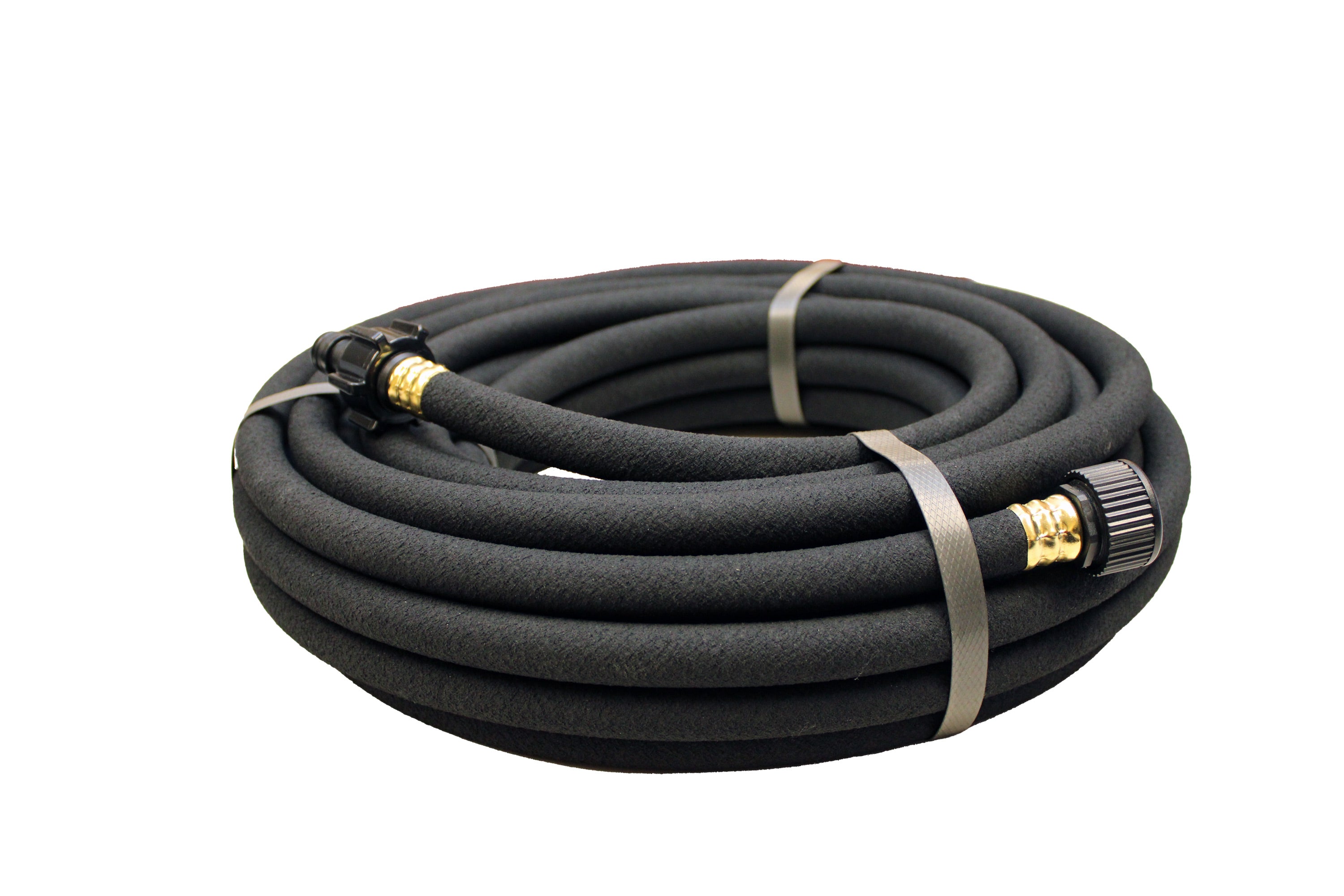 Not all soaker hoses are created equal. Ours is specially made to be used in no-to-low flow applications, specifically with rain barrels. Regular soaker hoses are designed to be used with external house faucets which force water out through the porous rubber membrane. Rain barrels must rely on gravity to supply pressure. Our rain barrel soaker hose is formulated with unique rubber compounds and fitted with sturdy injection molded plastic attachments to allow hook up to all standard 3/4-inch threaded spigots. Set up is as easy as connecting the 50-foot hose to your rain barrel's spigot and running it through your garden by the base of your plants. You can even cover it with a thin layer of mulch to conceal it. Once installed, the hose will time-release water along its entire surface which minimizes water loss and constantly hydrates your plants. Make your rain barrel more effective and remove the need to constantly water ground-based plants with our Rain Barrel Soaker Hose.
