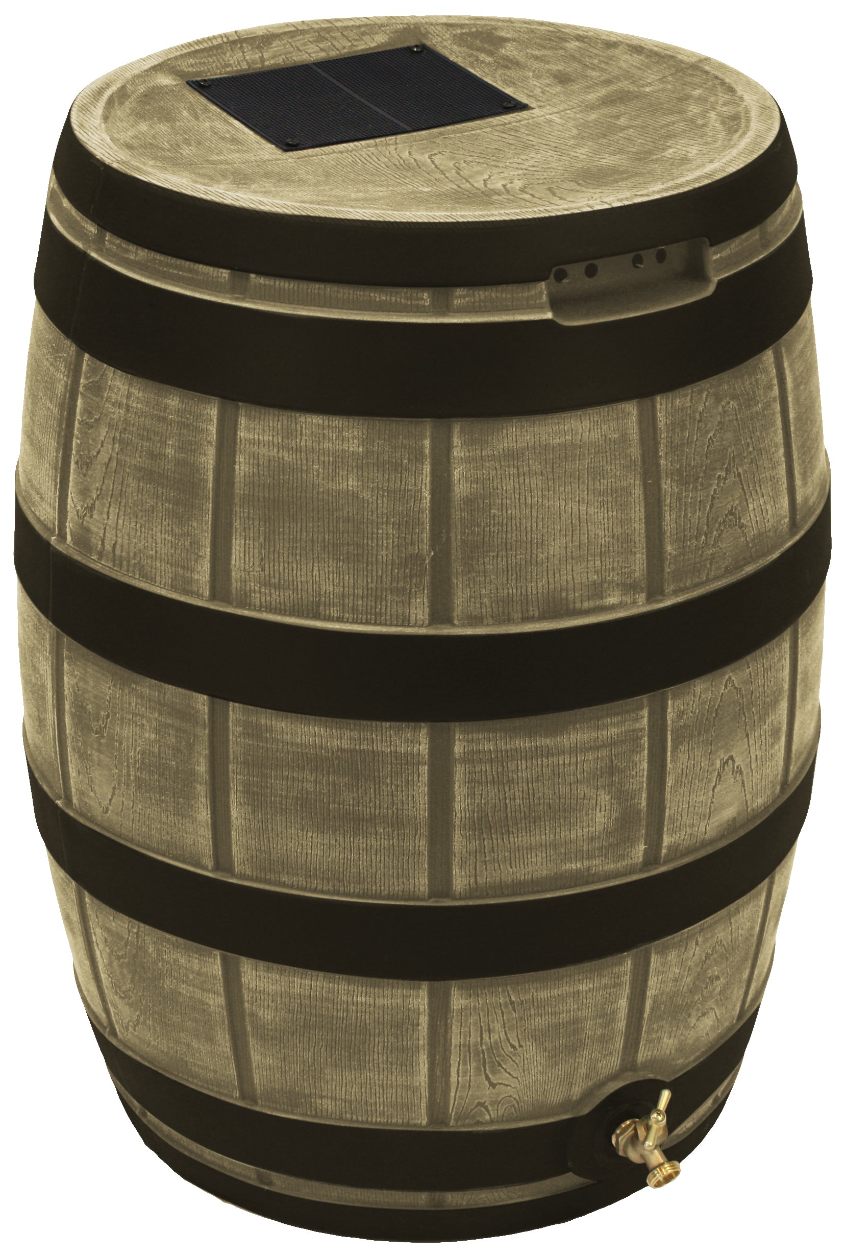 The Rain Vault – Darkened Ribs 50-gallon rain barrel is a classic looking barrel. Modeled after an actual whiskey barrel, this unique rain catcher will provide you with plenty of fresh water while looking great against your home. The top features an anti-debris screen to keep out leaves, and the bottom hosts a high-quality metal spigot for a standard hose connection. The back is flat to sit flush against exterior walls so you don't lose space, and there are connection points which can be used to link barrels together, using the overflow to fill the next barrel. The barrel also has two, deep set handles which are very convenient when moving the Rain Vault.