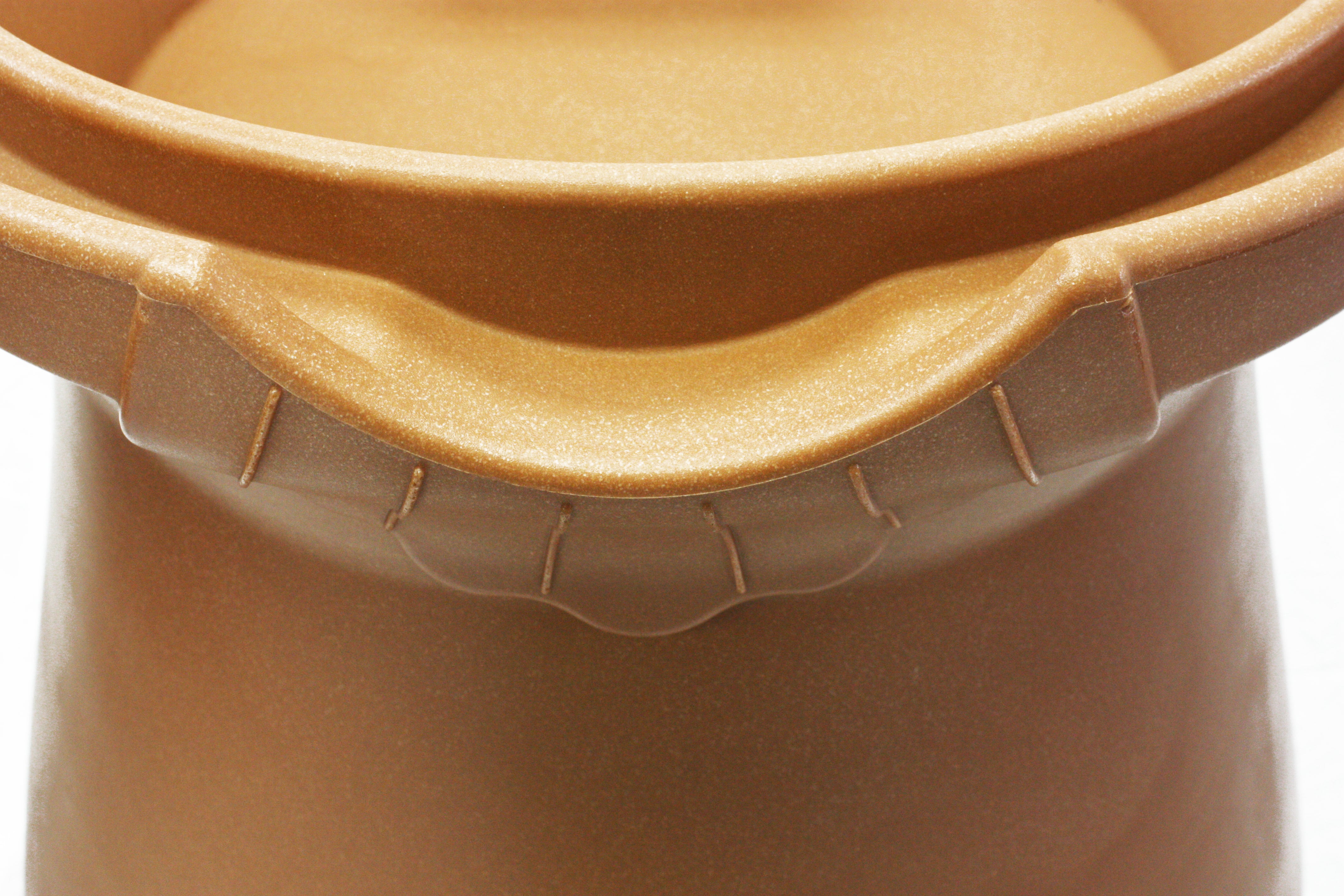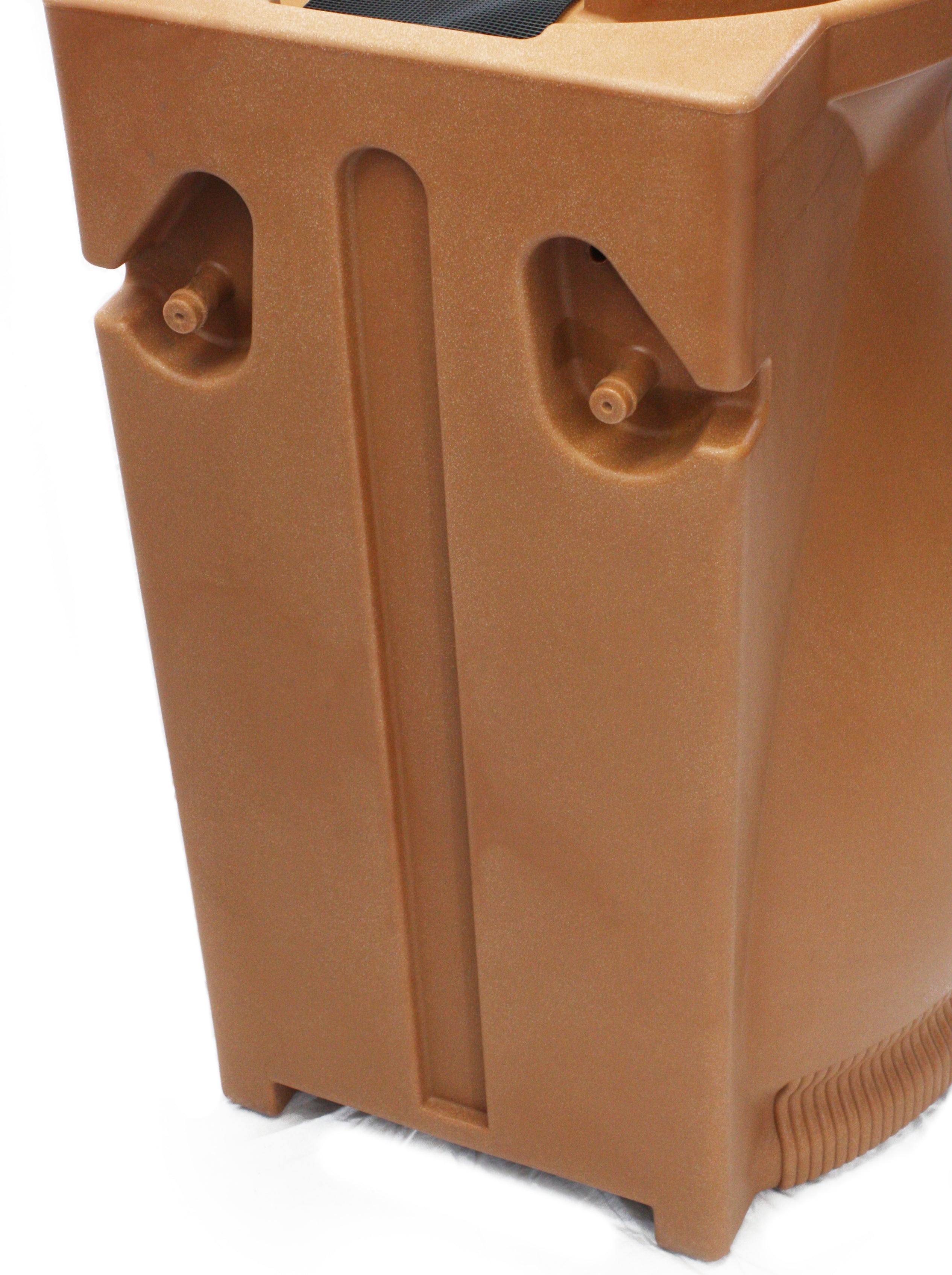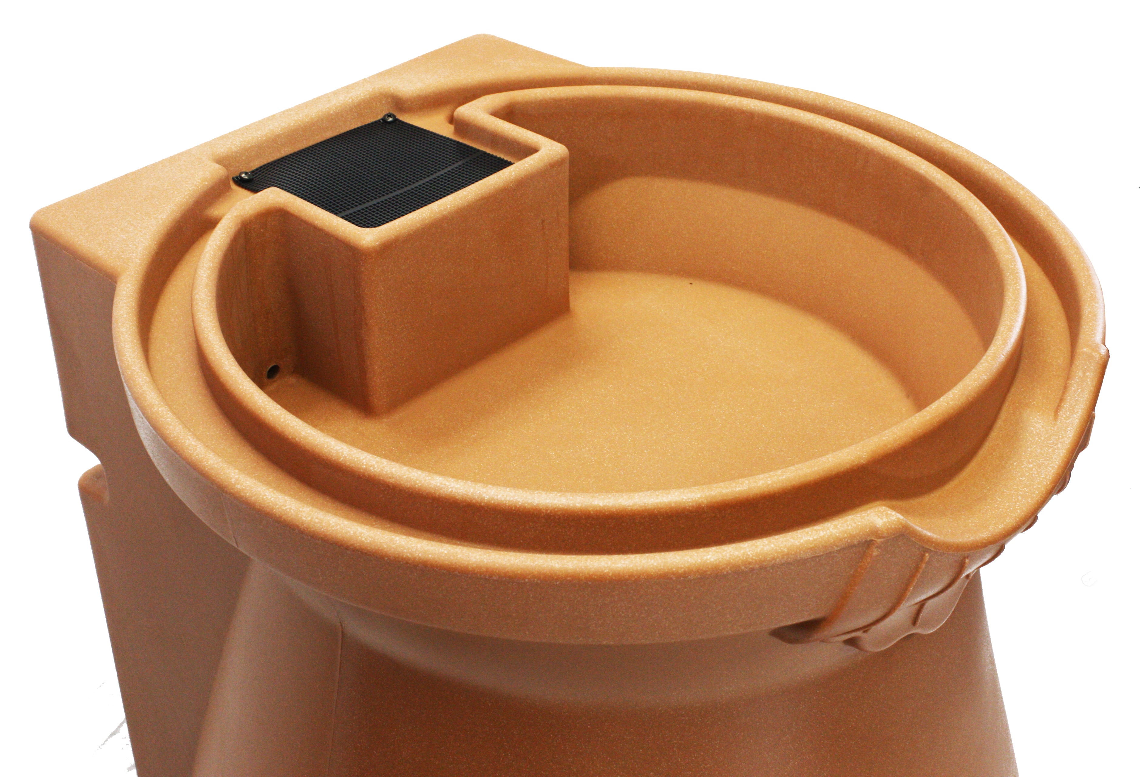 The Rain Wizard Urn 65-gallon rain barrel is both beautiful and cleverly designed. Constructed with thick and durable plastic resin, it will hold up to the harshest elements. With the appearance of a terra cotta urn, the rain barrel's graceful lines, curves, and trim make it a stylish accent piece for your home's exterior. The flat back design allows you to position the barrel close to walls or flat areas. The top is a self-draining planter and includes the Good Ideas original, integrated channel that diverts overflow to the front of the barrel to keep your foundation from flooding. Like all Good Ideas rain barrels, this product is BPA-Free.