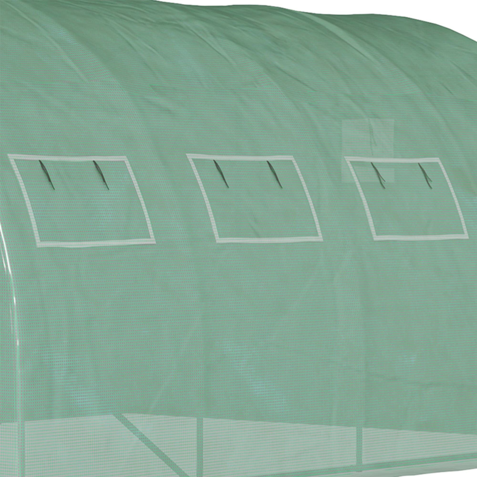 Extend your growing season and protect your plants year-round with this Outsunny PE-Covered Walk-In Greenhouse—a simple, durable solution for growers and gardeners who want a lower cost, more flexible solution for a climate-controlled garden. The high-quality PE mesh cover helps regulate temperature and humidity while shielding your crops from wind, pests, and sudden weather shifts. A steel frame provides dependable stability, and the extended edges are designed to be buried for added anchoring. Roll-up side windows offer adjustable ventilation, while the zippered door gives you easy access for tending plants or moving tools. Spacious and versatile, it can be placed over an existing garden bed or used to establish a fresh growing space. A practical, all-season upgrade for any gardener committed to bountiful harvests.