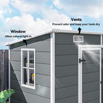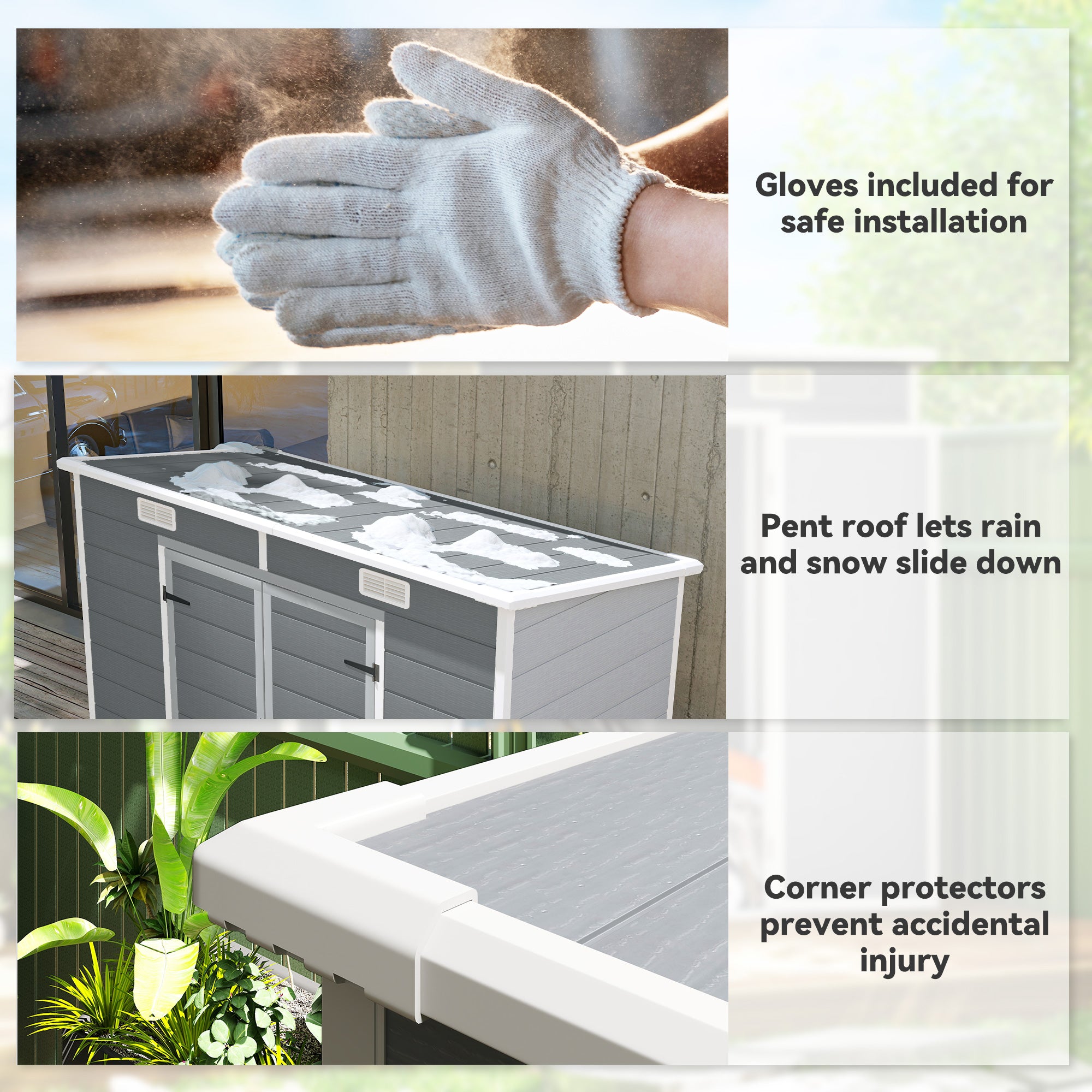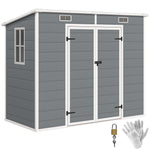Outsunny 8' x 4' Plastic Outdoor Storage Shed with Floor, Window, Lockable Doors and Vents, Gray