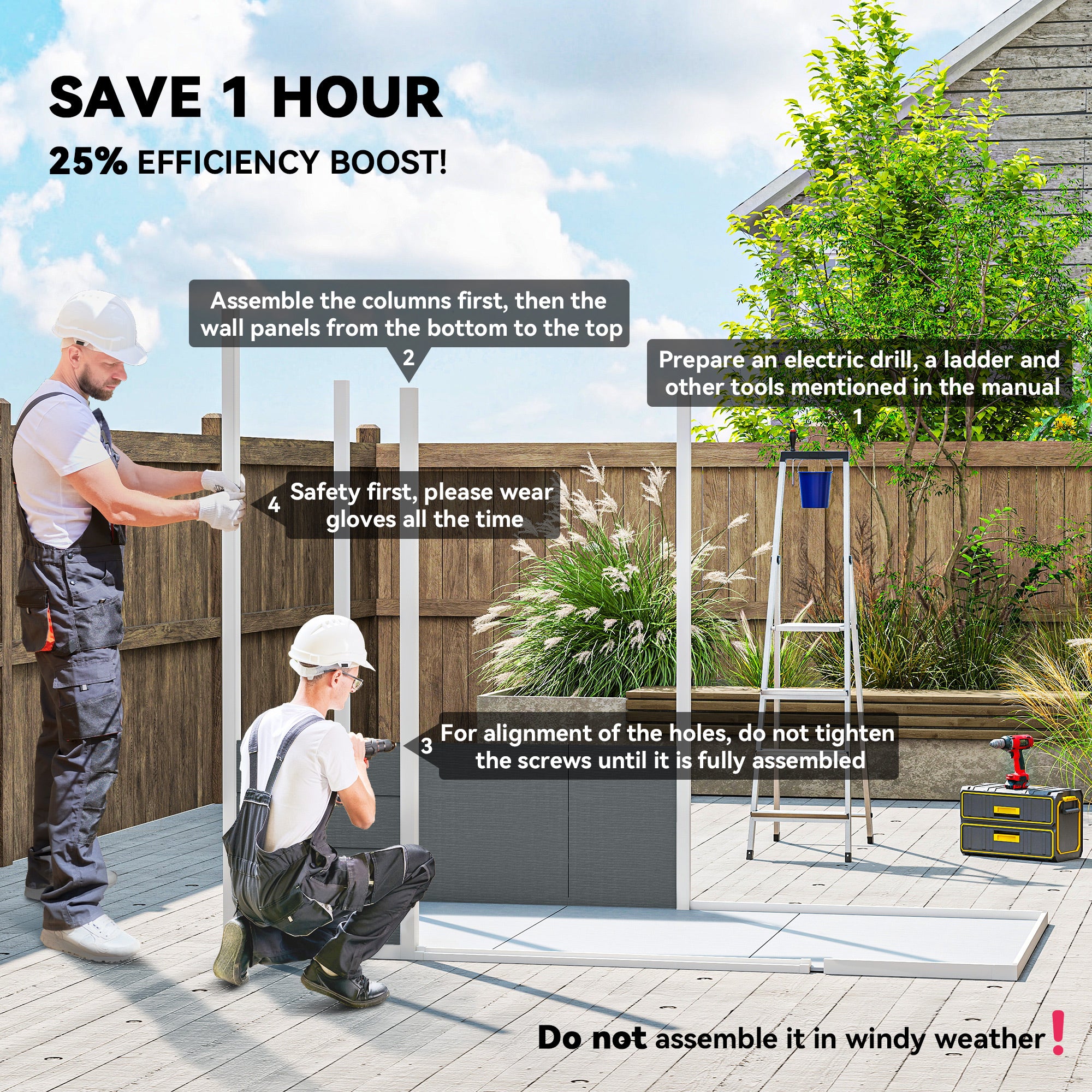 • Protective Resin Construction: Constructed from 12mm thick polypropylene resin and reinforced with aluminum, this garden shed is waterproof, UV-resistant, and features a floor to prevent rainwater damage
