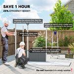 • Note: Assembly requires 2-3 people and takes about 3 hours. Avoid installation in strong winds and always wear provided gloves.