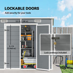 • Secure Access: Equipped with double-hinged doors for easy entry and exit, this tool shed includes a latch and lock for added security to keep your items safe