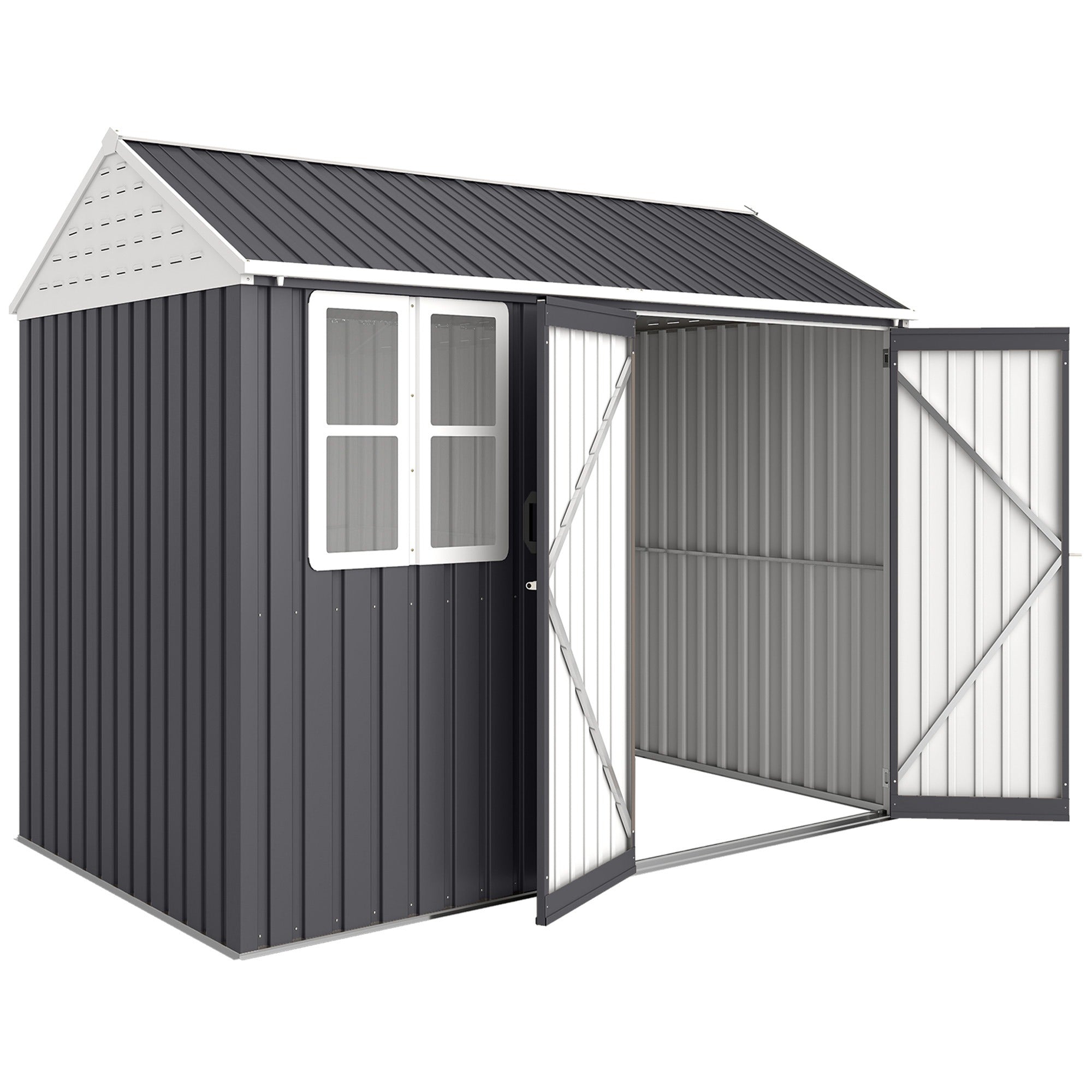 Outsunny 8' x 6' Metal Garden Storage Shed, with Double Swing Doors, Air Vents, Window, Dark Gray