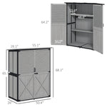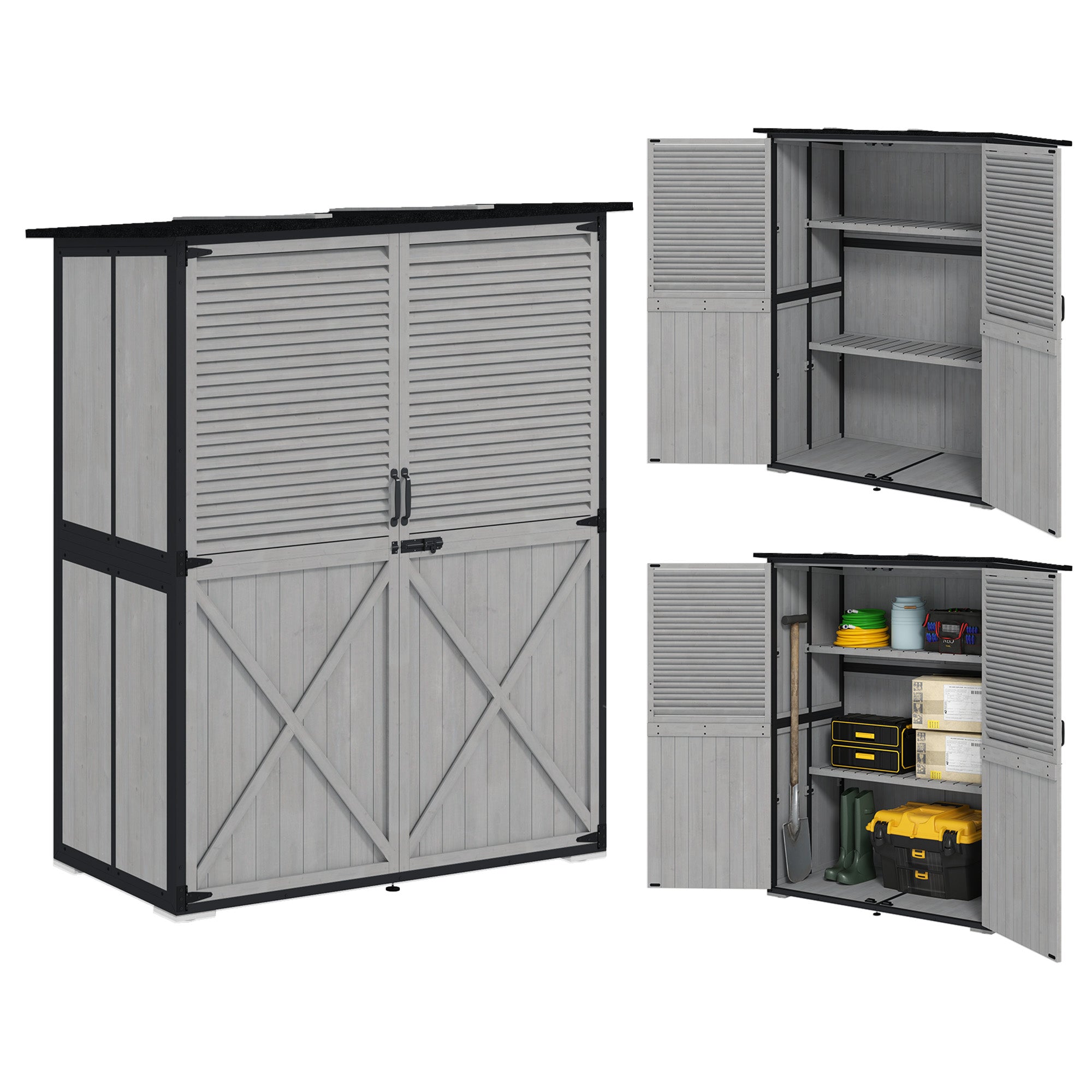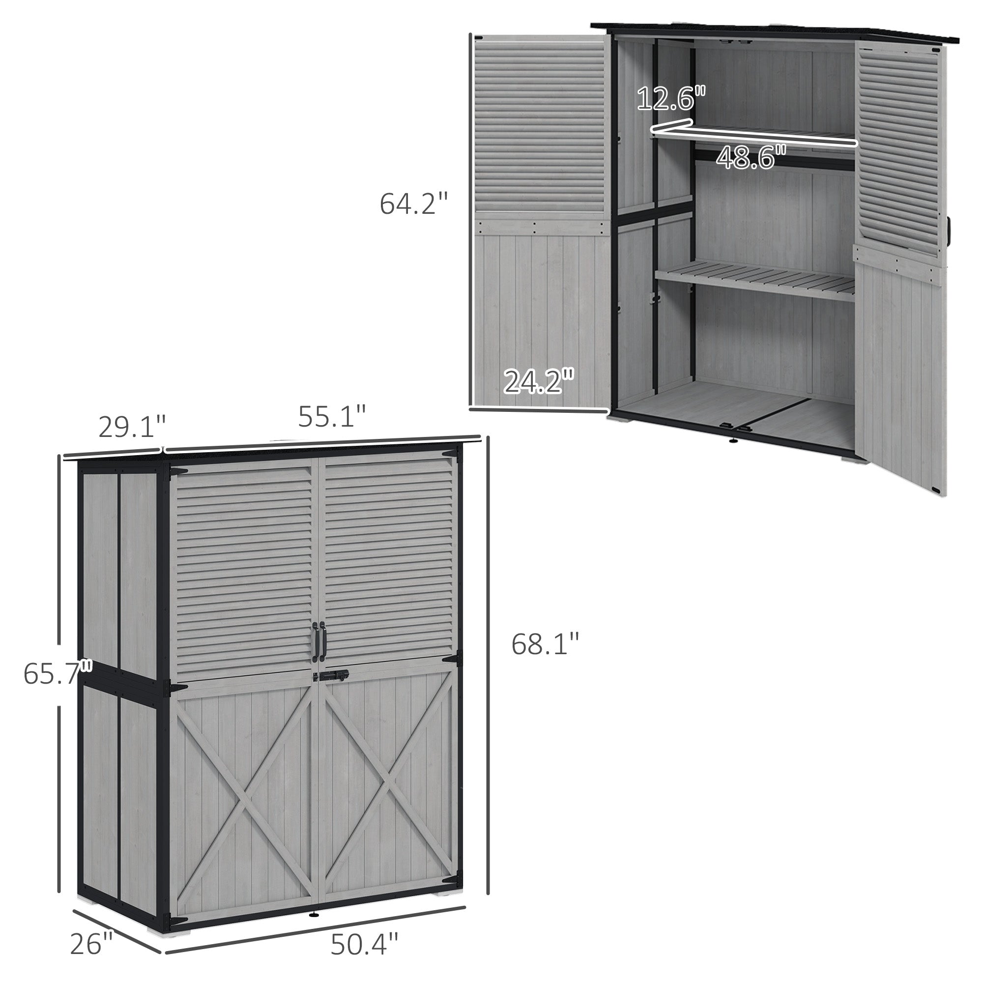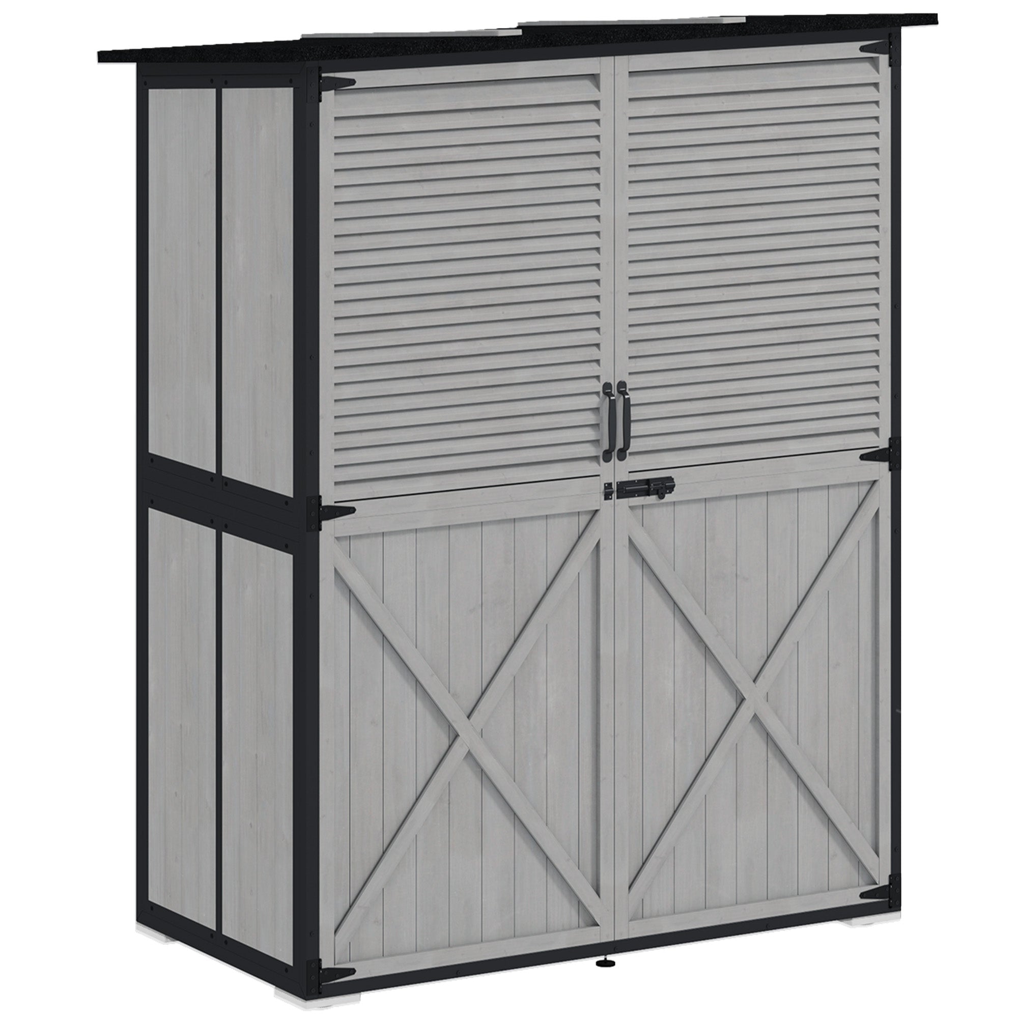 Outsunny Wood Storage Shed with Asphalt Roof, 2 Shelves, Lockable Doors, Gray