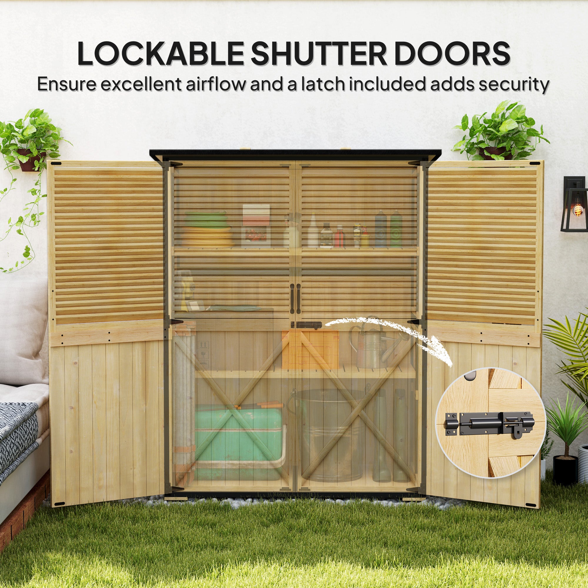 Outsunny Wood Storage Shed with Asphalt Roof, 2 Shelves, Lockable Doors, Natural Finish