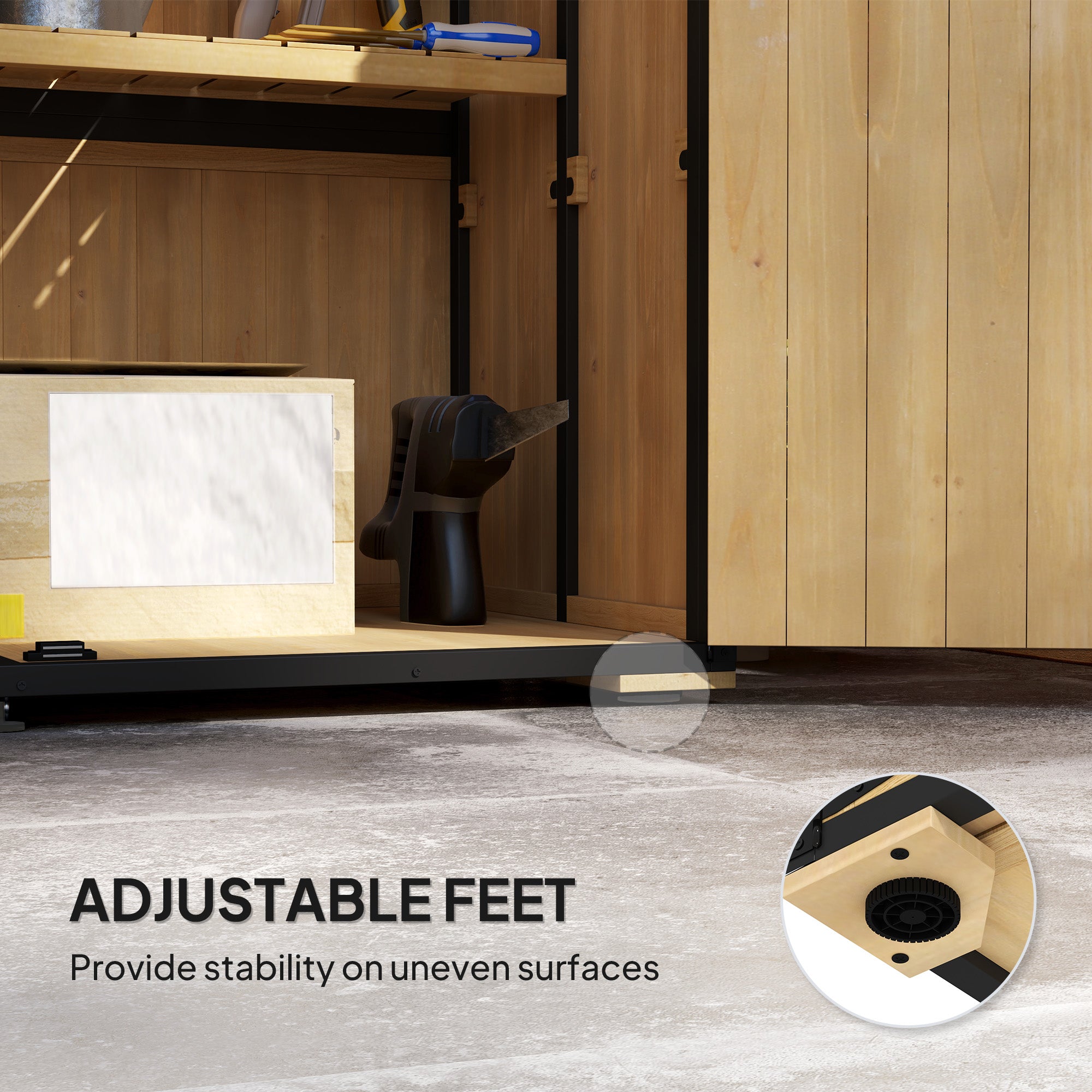 • Stable on Any Surface: Whether your garden is flat or uneven, the adjustable feet on this wooden shed keep it perfectly level and stable. Built for lasting durability, it ensures that your shed remains solid and safe in all conditions