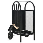 vidaXL Steel Firewood Cart, 11.8"x13.8"x31.9", Black